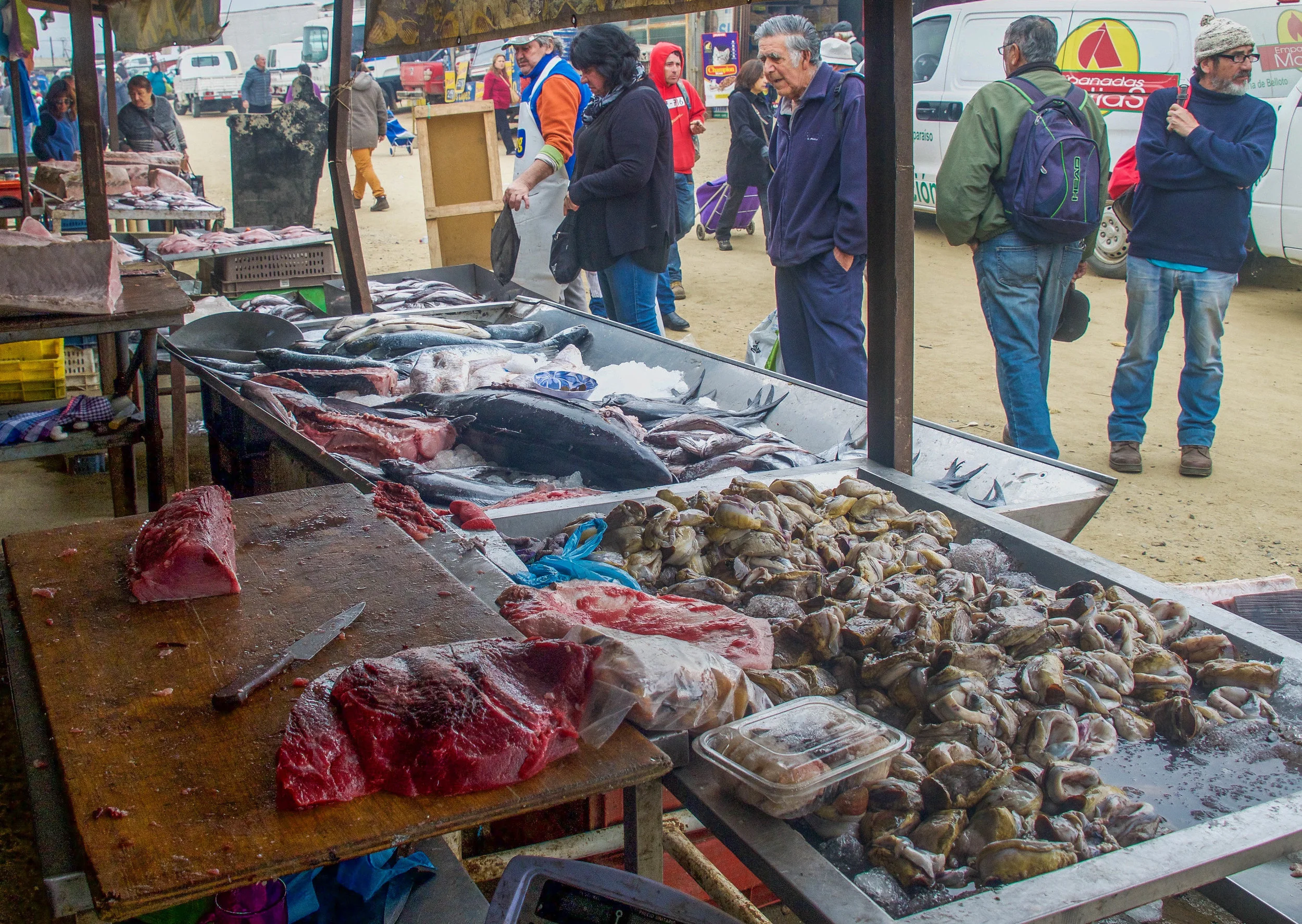 A butcher sliced off a slab of arrollado huaso – a head cheese-like roll of meat scraps and spices tied in pork skin and boiled tender. The meaty flavors and spices exploded in my mouth, making me wish for a smear of blazing red pebre (Chile’s go-to hot chili paste) on a soft disc of the ubiquitous pan amasado, flat bread made with flour and lard and baked in a brick oven. I ate my way through the market, each vendor happily pushing food on me and smiling “¡Disfruta!” (Enjoy!), promising: “Just wait until summer when the food’s really good!”